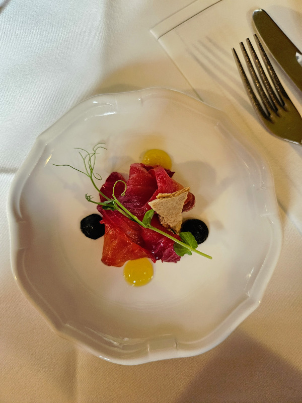 La cuisine, préparée avec des produits frais et de saison, accompagnera parfaitement nos 18 convives réunis autour de 3 tables de 6 personnes.